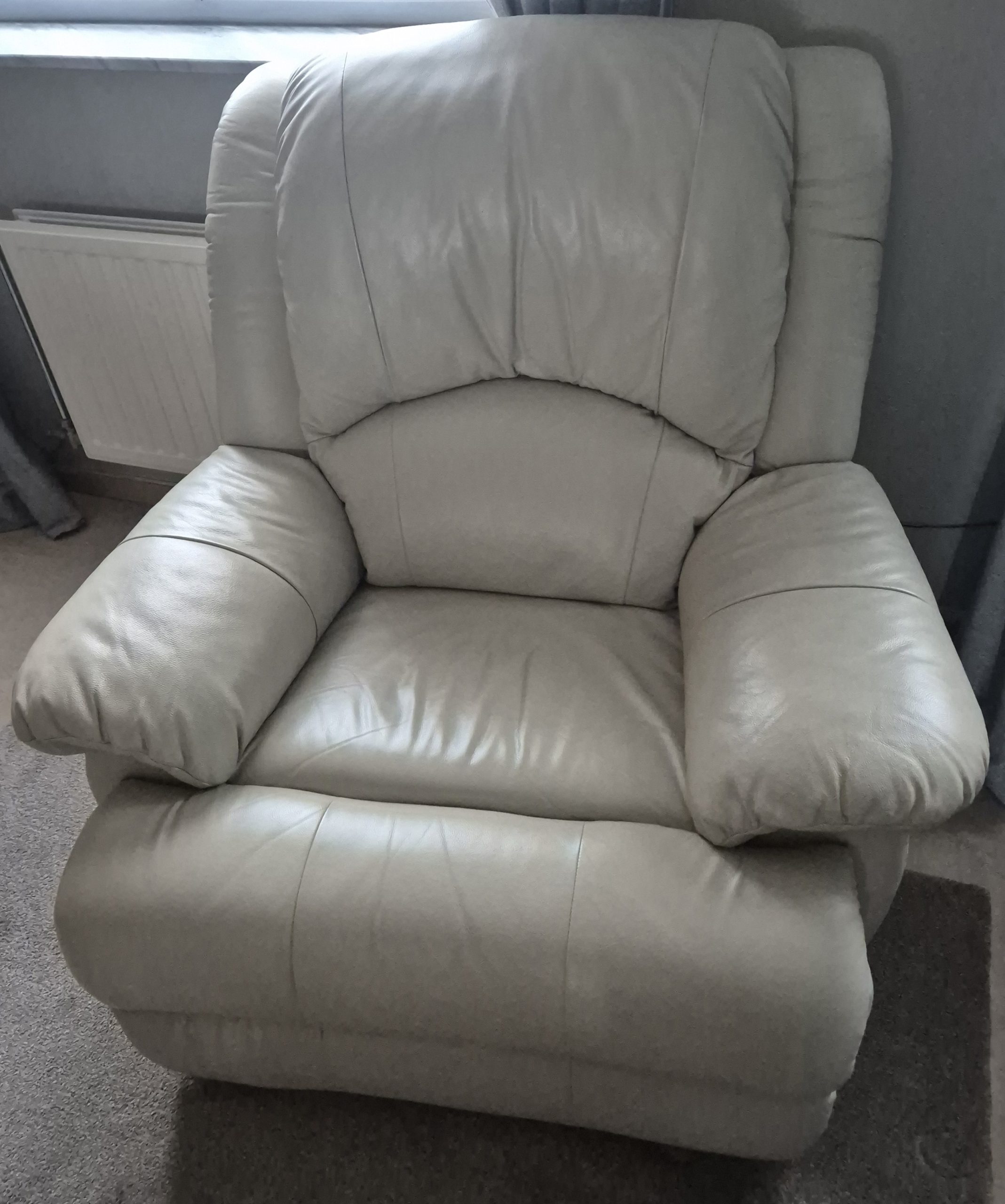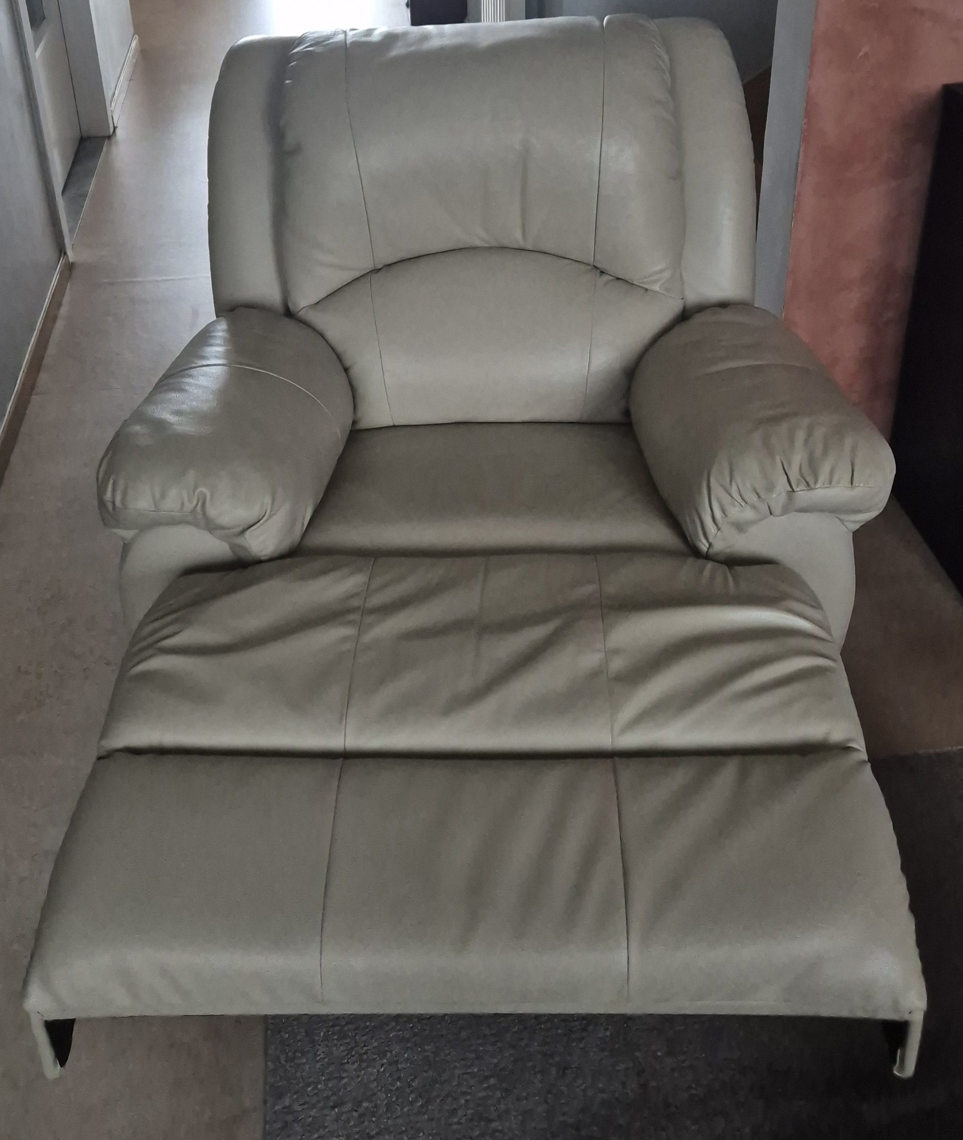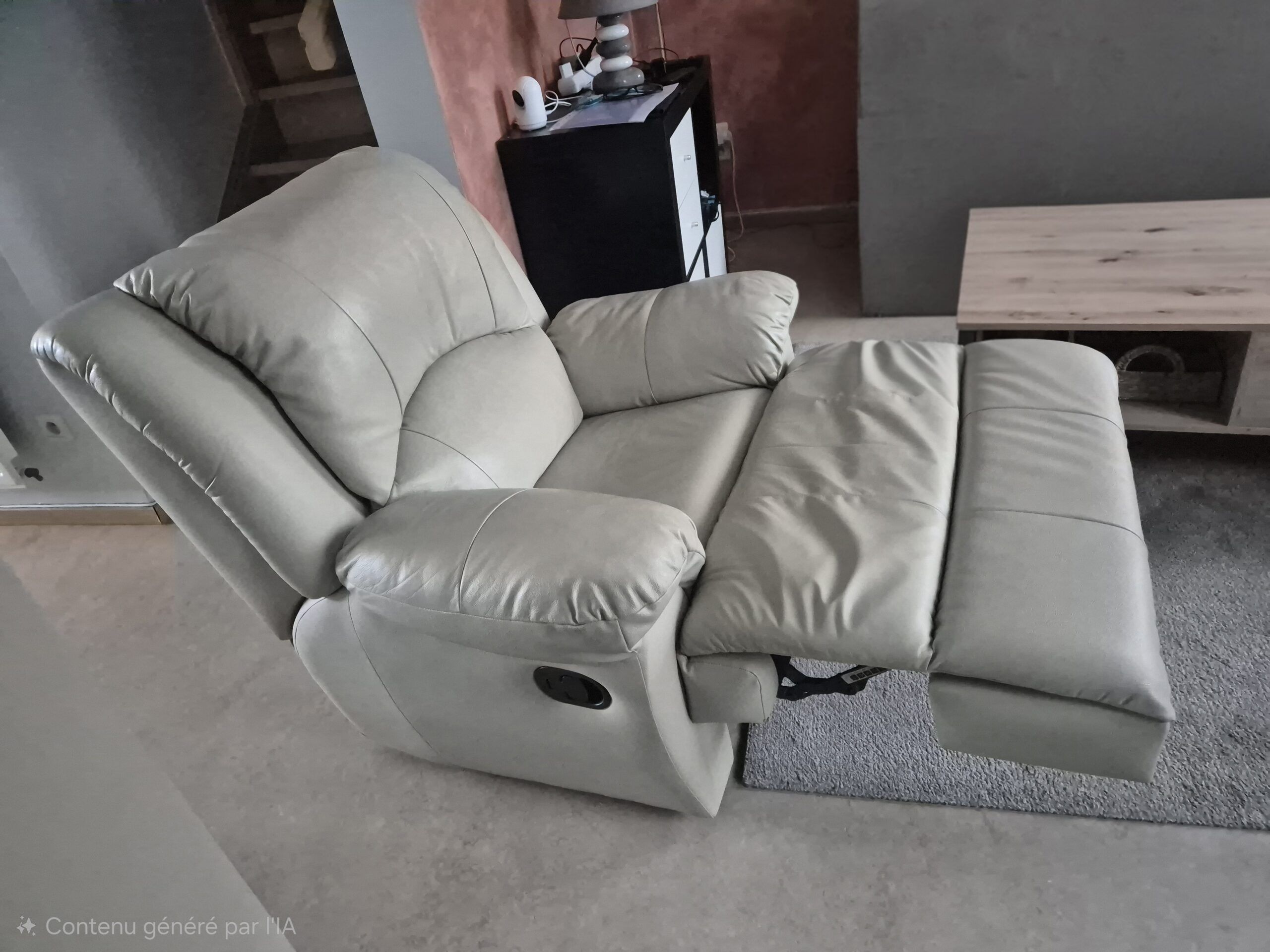 A vendre 2 fauteuil cuir couleur beige. 1 fauteuil relax mécanique bon état. Très confortable. Prix demandé 100 euros. A venir chercher