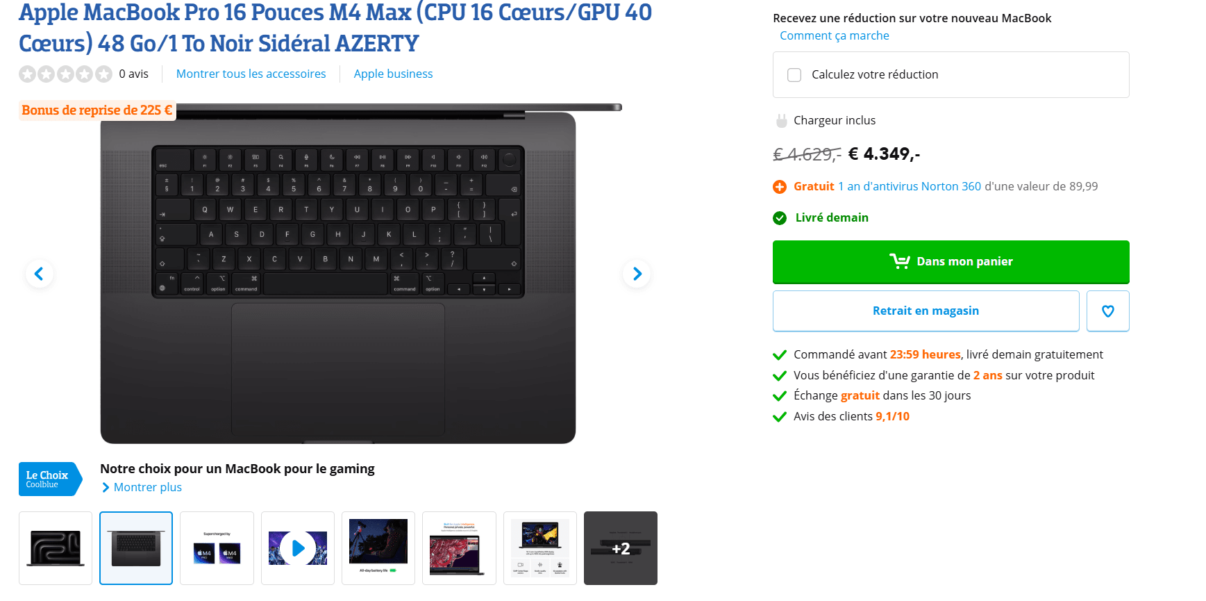⚙️ Caractéristiques techniques : Écran : 16 pouces Liquid Retina XDR Processeur : Apple Silicon M4 Max (16 cœurs CPU / 40 cœurs GPU) Mémoire RAM : 48 Go unifiée – idéal pour le montage, 3D, IA, dev… Stockage : 1 To SSD ultra rapide Couleur : Noir sidéral (Space Black) Clavier : AZERTY FR / Belge