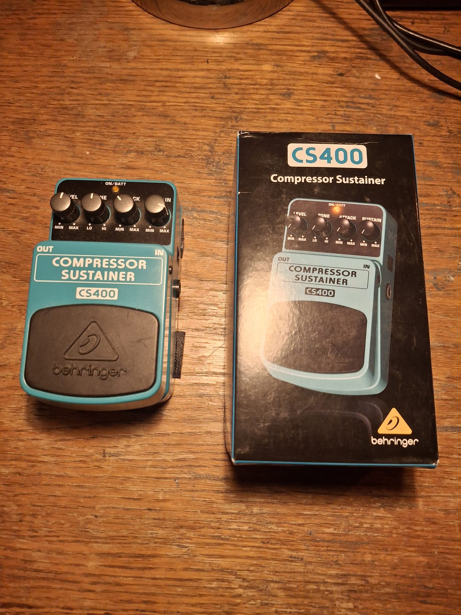 La Behringer CS400 est une pedale de compresseur et de sustain conçue pour uniformiser votre son en compressant les notes fortes et en amplifiant les notes douces, tout en prolongeant le sustain.