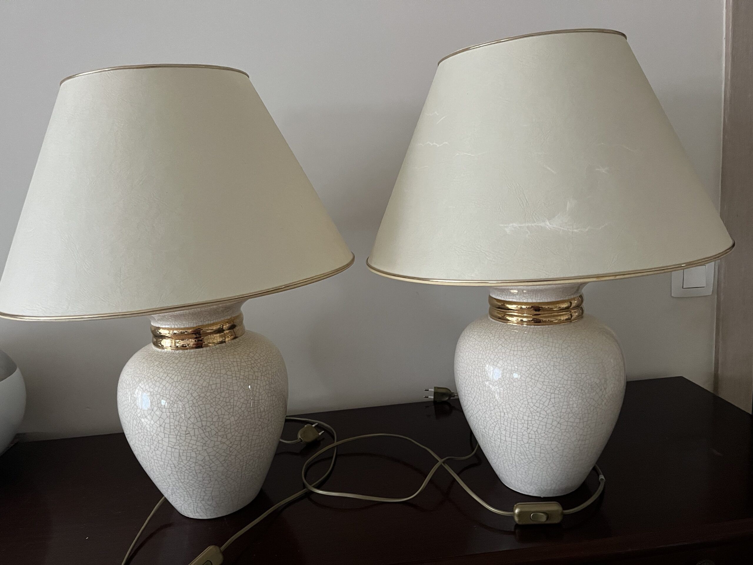 À vendre 2 lampes céramique avec abat jour en très bon état. 60 cm de haut. Vendus ensemble. À chercher à Forest et paiement cash en mains propres.