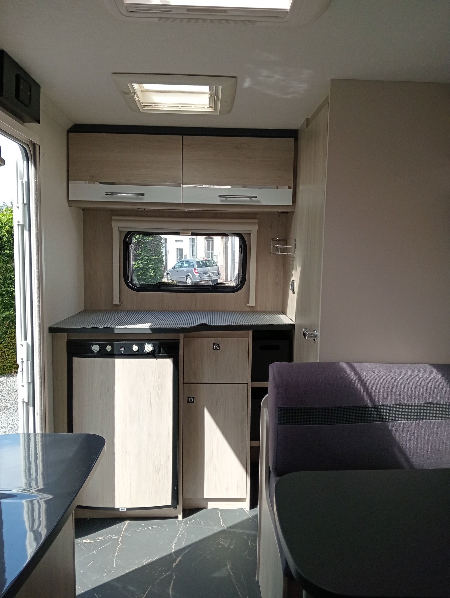 Grand auvent. Caméra de recul. Moteur enduro pour garer la caravane. Bac à roulettes pour les eaux usées. Pneu de secours. Rétroviseur auto compris. Divers options....