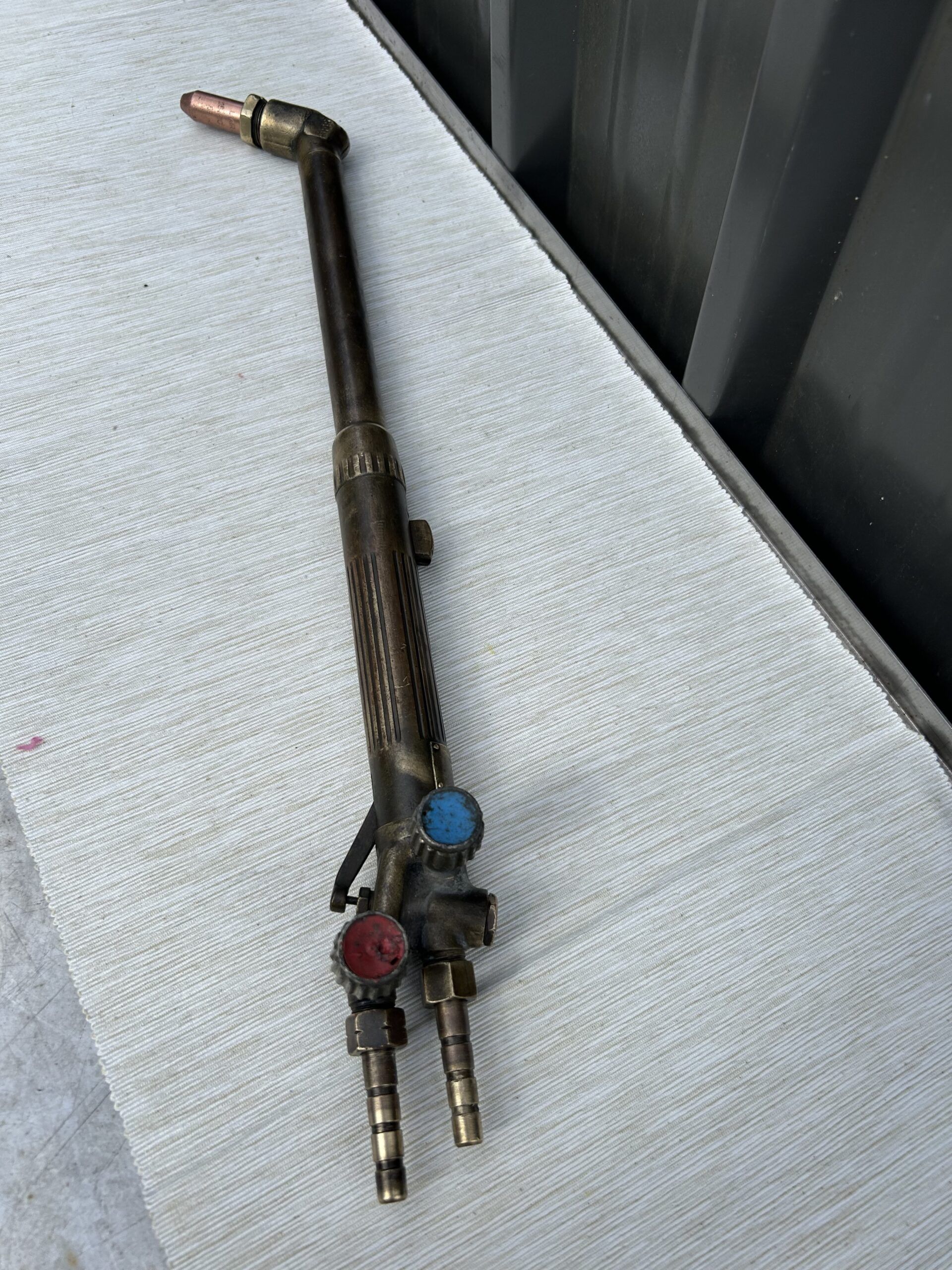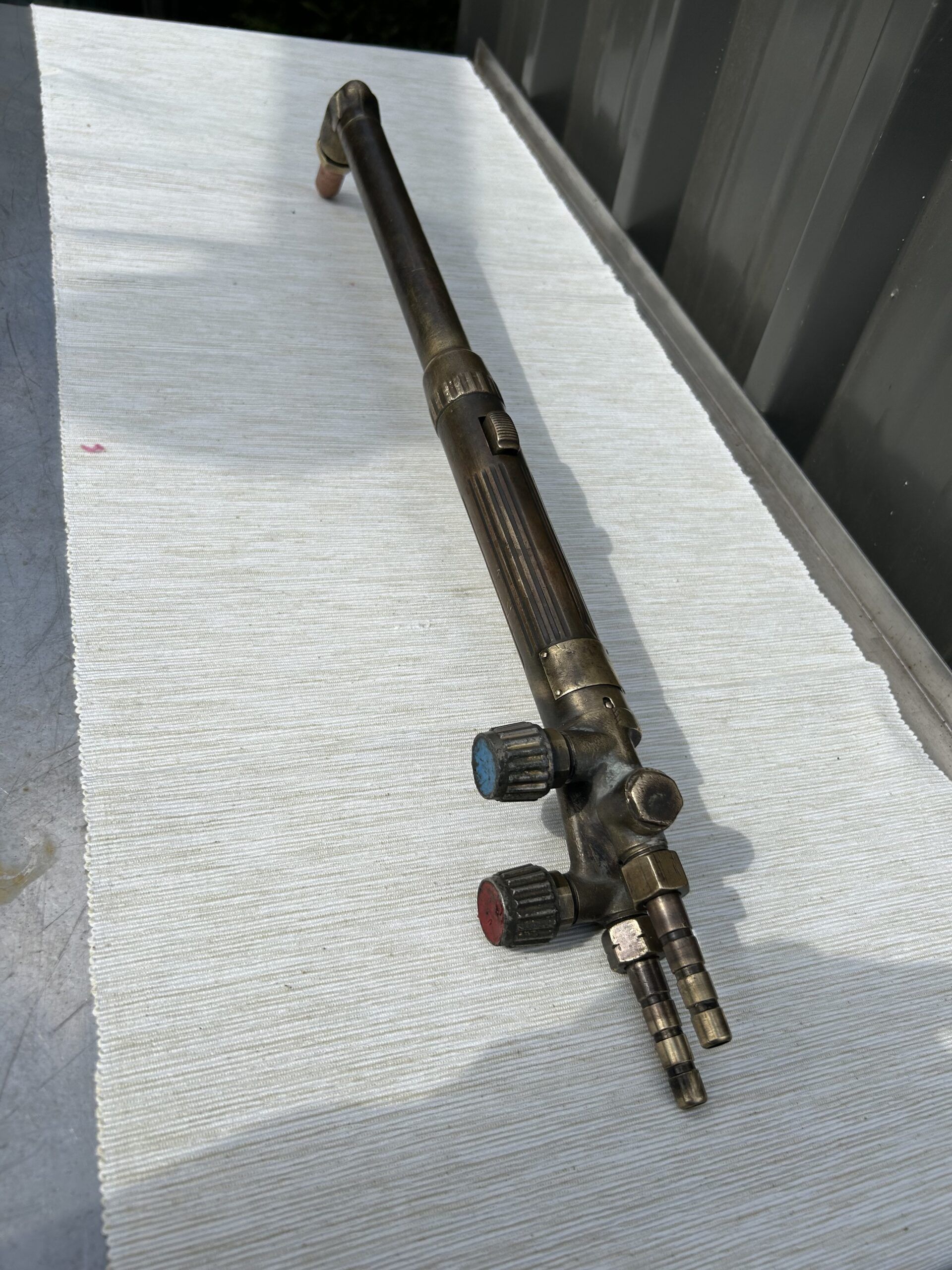 Fin d'activité .Authentique chalumeau oxycoupeur professionnelle outil utilisé pour découper le métal (surtout l’acier) >25mm d'épaisseurs suivant l'expérience . .7020 Maisières Belgique.