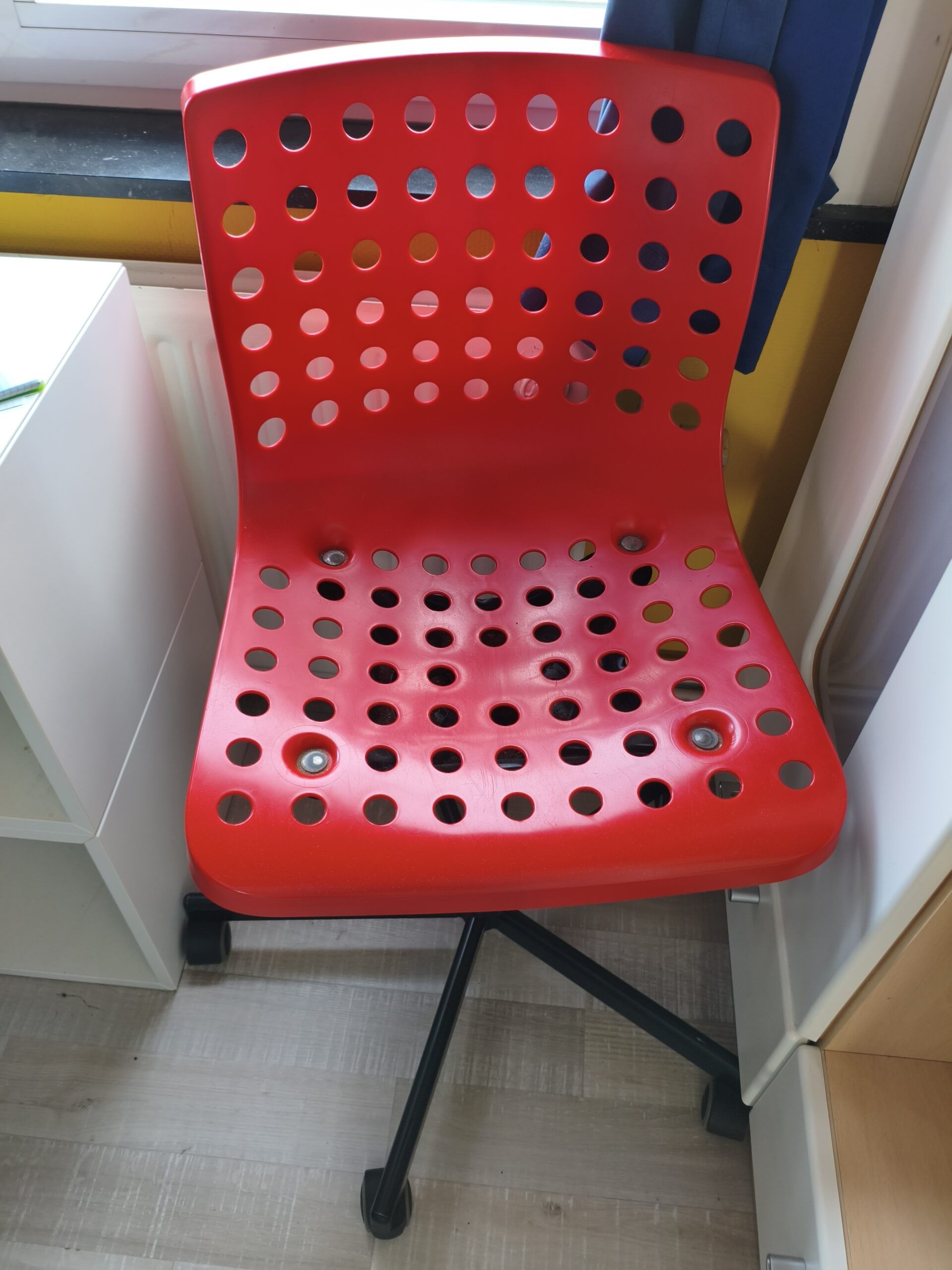 - 1 chaise de bureau sur roulette rouge en parfait état