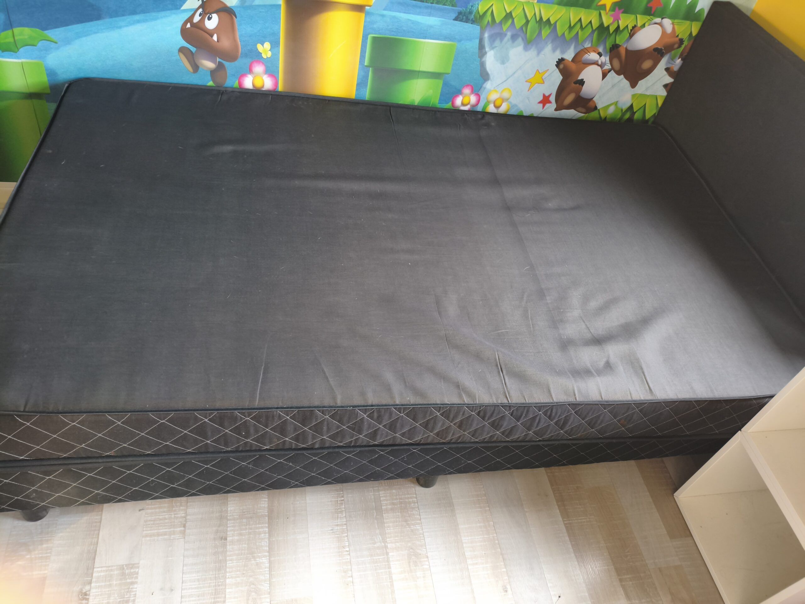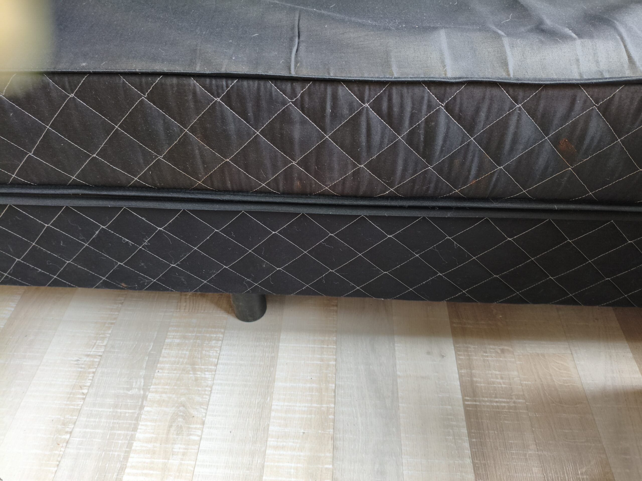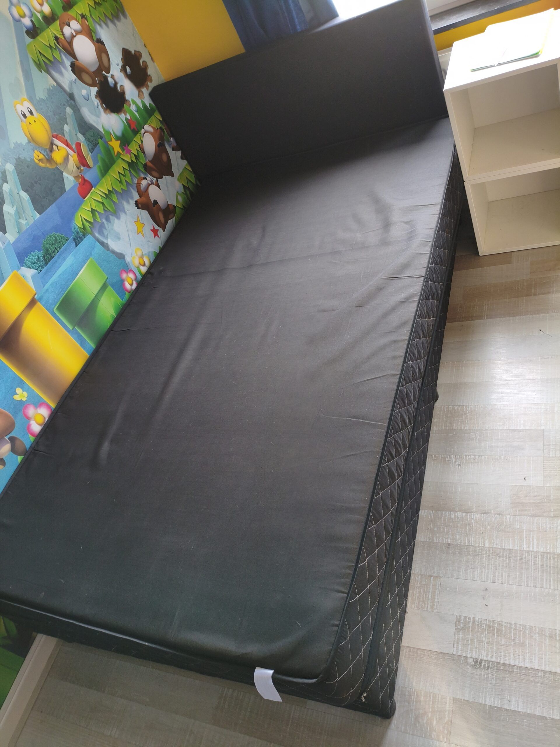 - 1 matelas assorti noir matelassé (1 légère auréole sur 1 des côtés). largeur : 120 cm, longueur 200 cm, épaisseur 16 cm