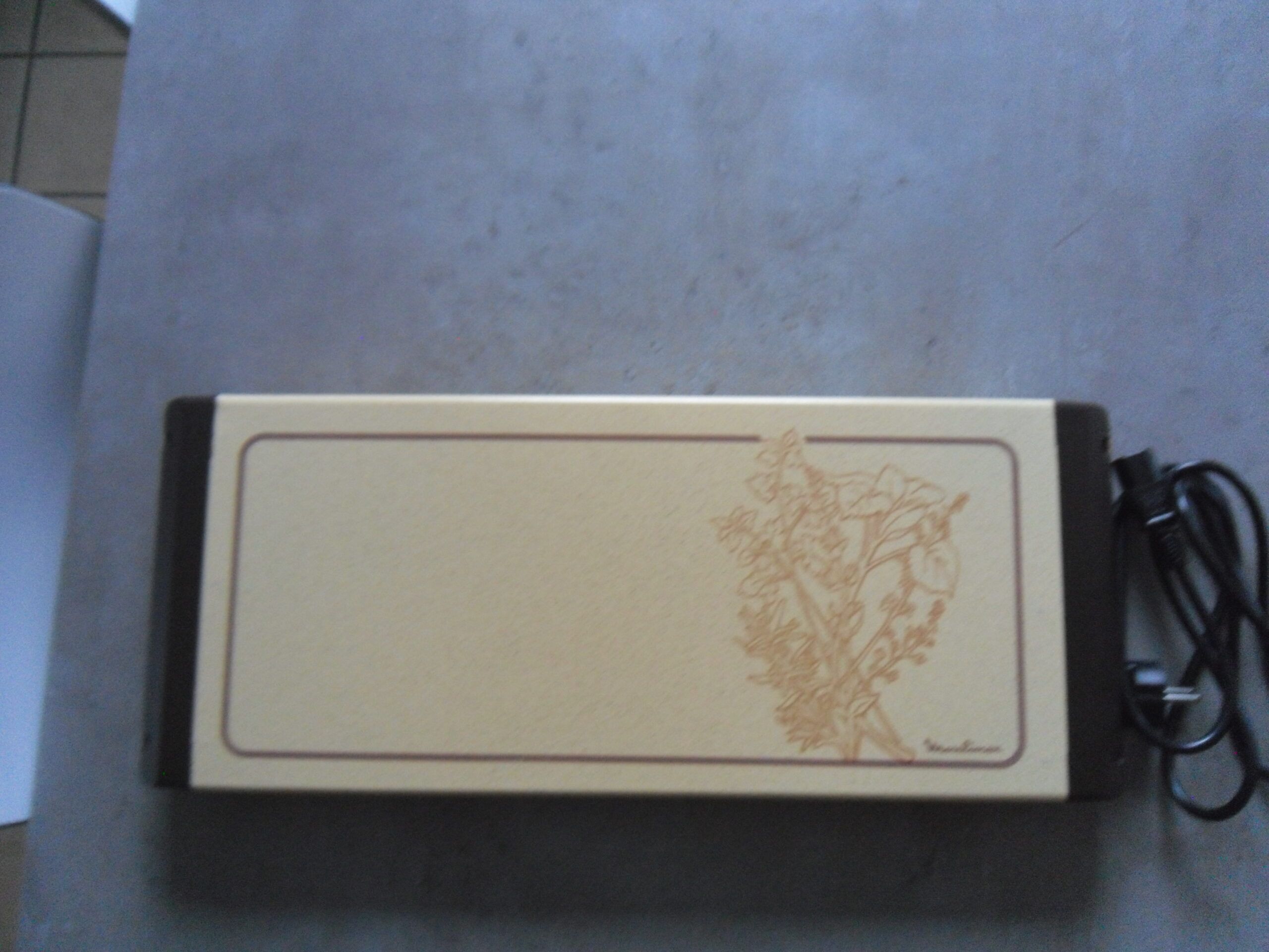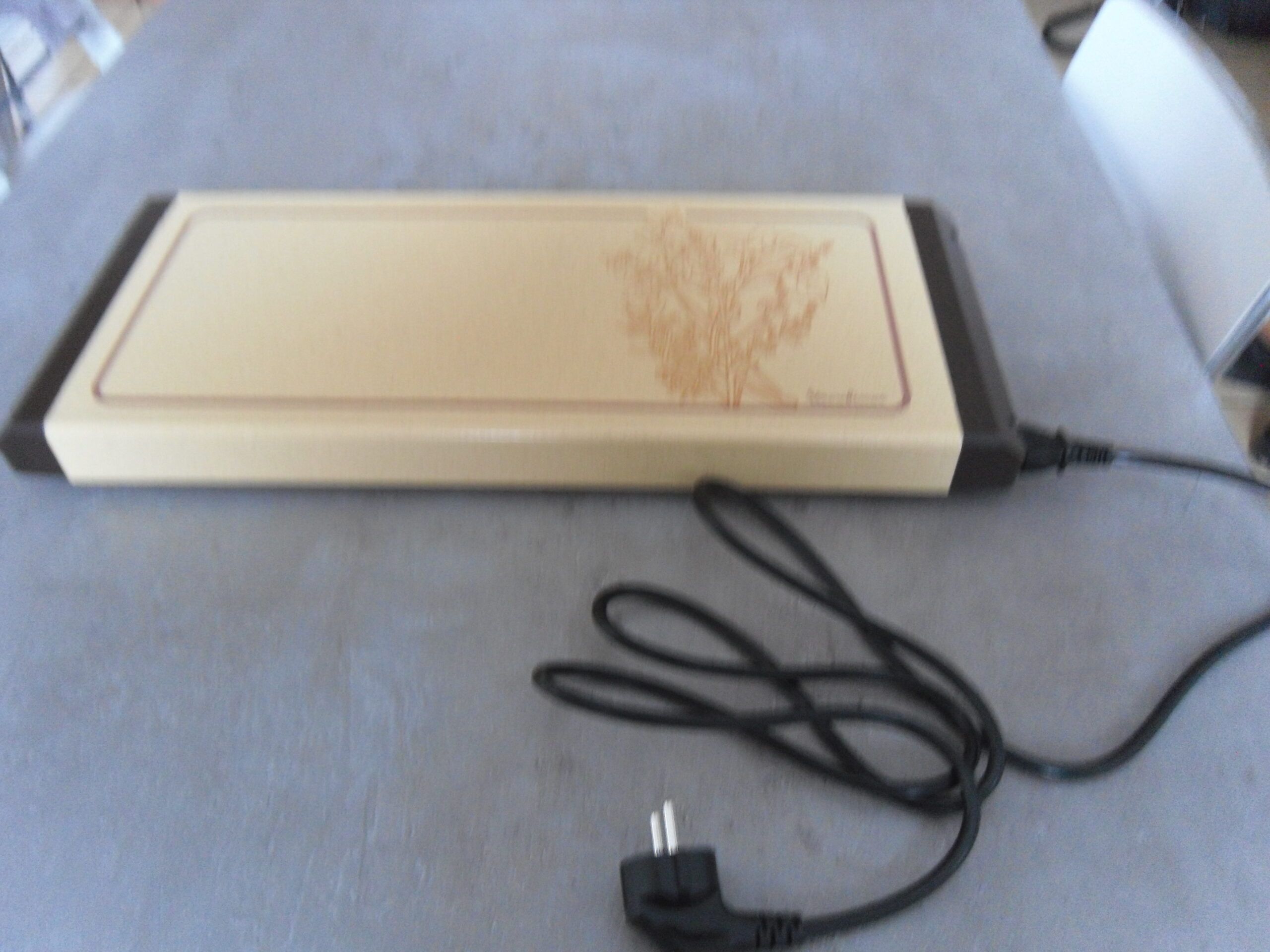 Chauffe-plat 220 V, branché 8 minutes, maintien au chaud les plats ou assiettes pendant 1 heure.