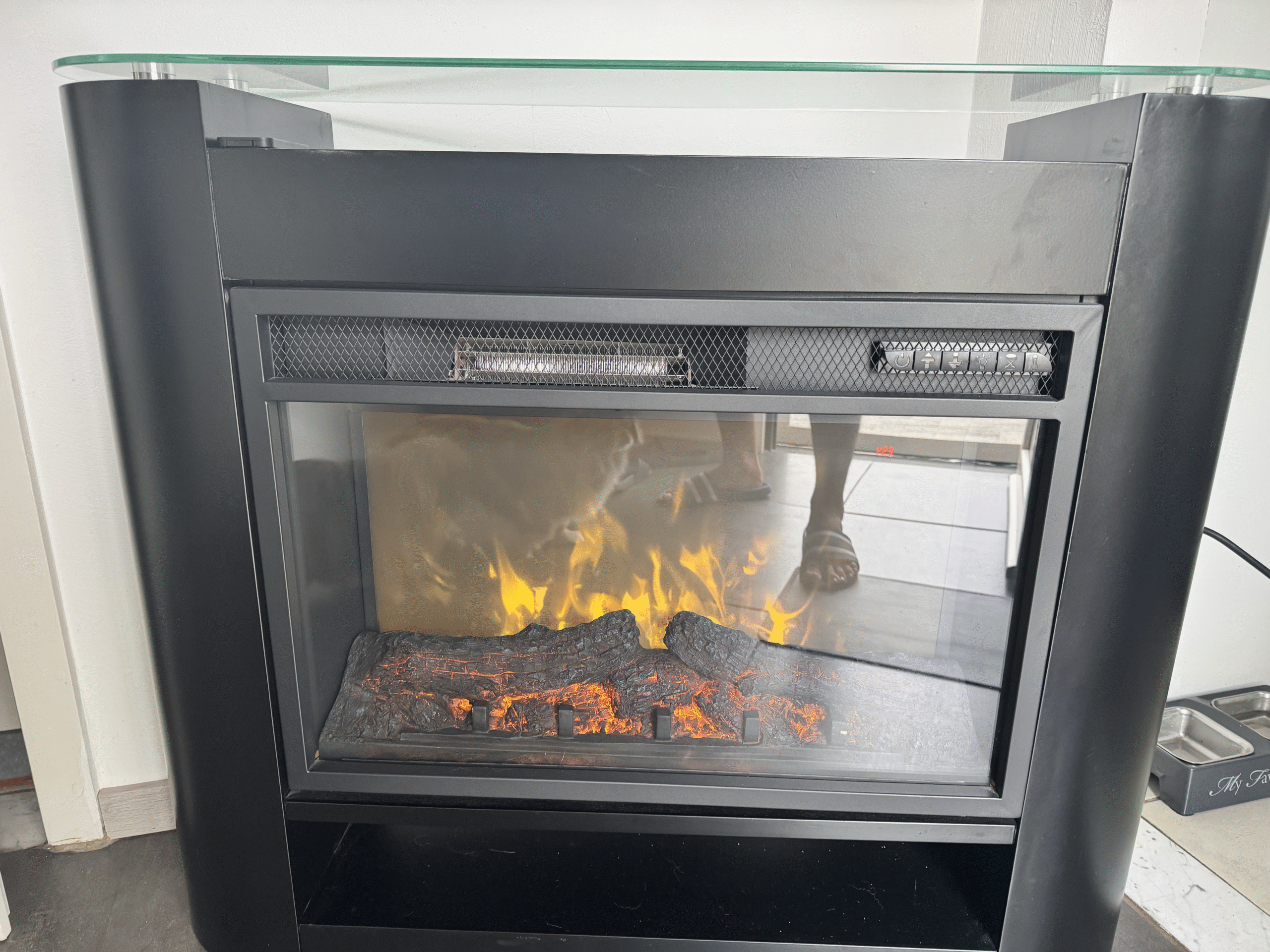 Choix de la température. Aussi possibilité d'utiliser en mode "décoratif" sans chauffage.