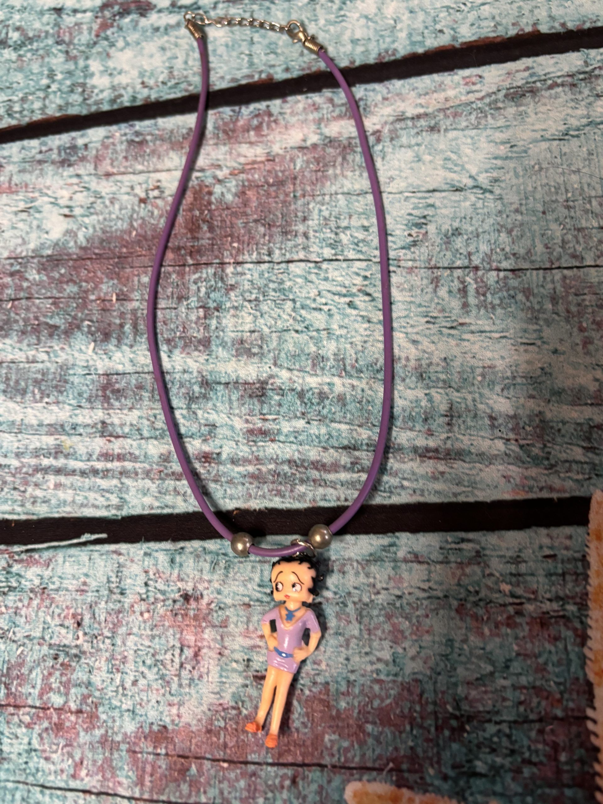 Accueil 9 Produit 9 Collier Betty Boop Mauve – Bras sur les anches