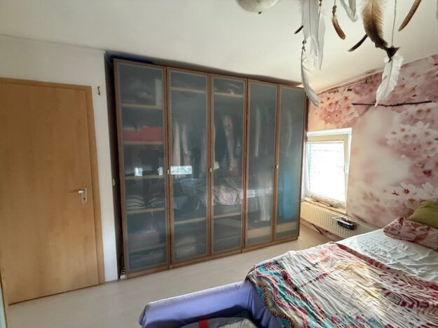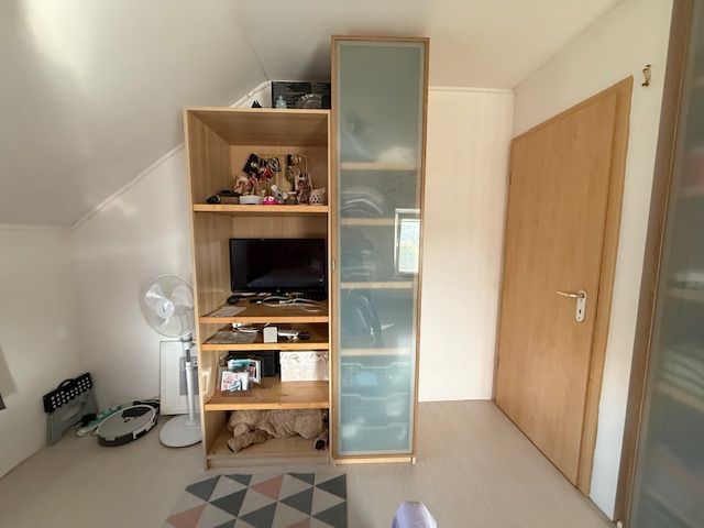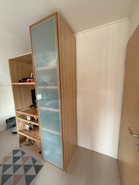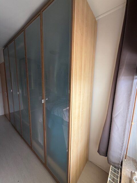 Ensemble garde-robes modulables bois clair avec portes en verre opaque – excellent état