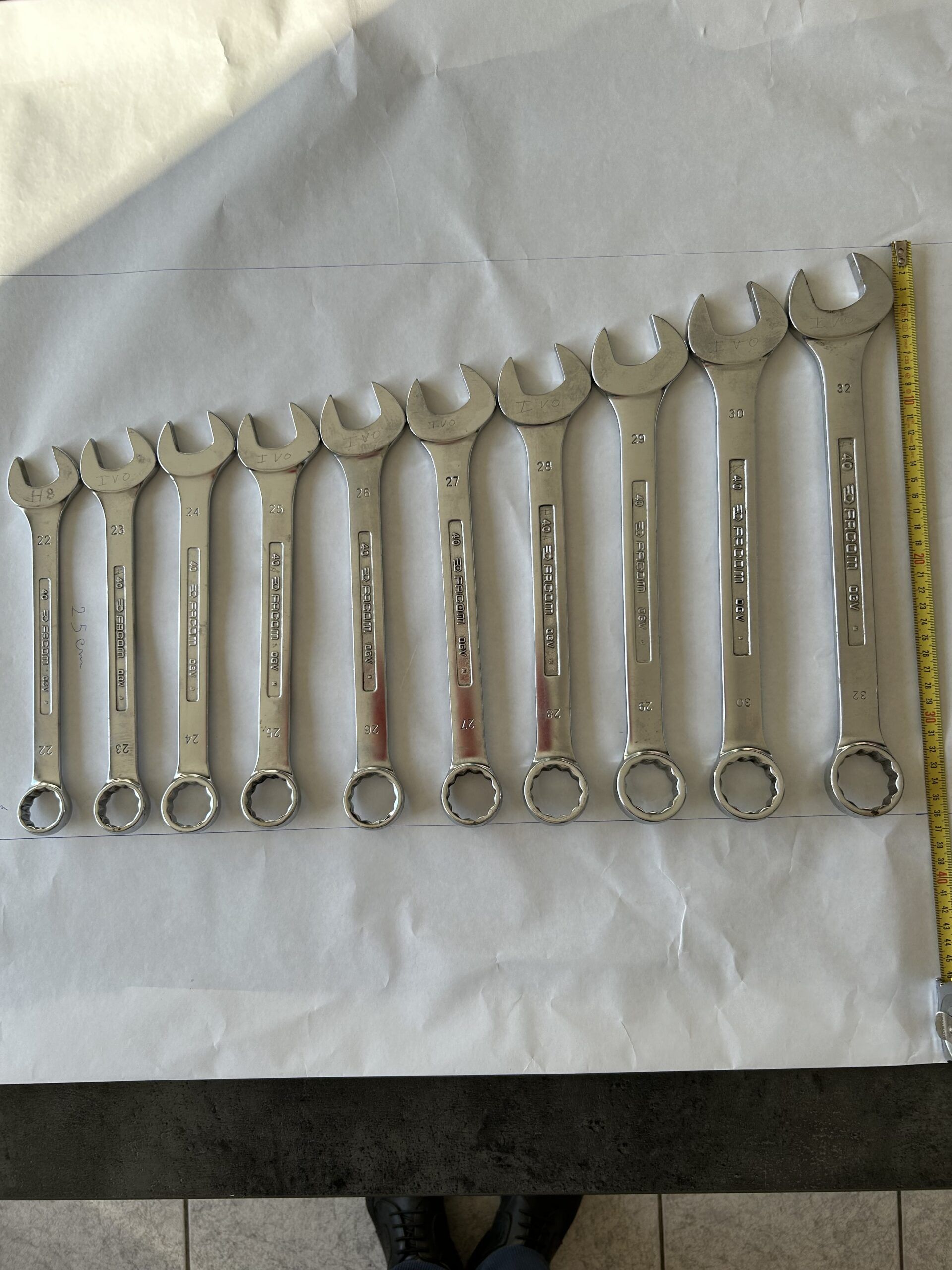 Lot complet de 10 clés mixtes FACOM 440, tailles 22 à 32 mm.
