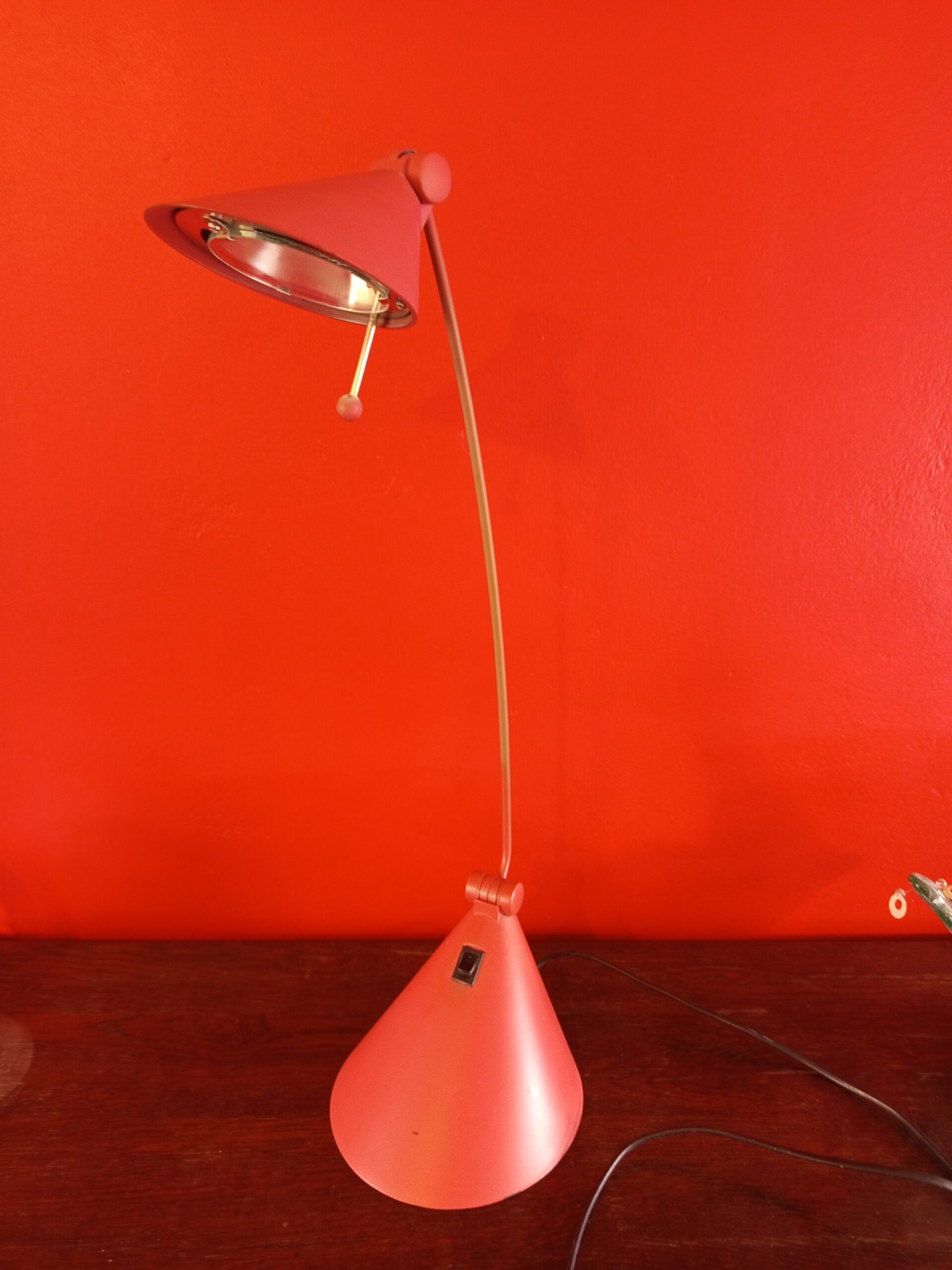 Lampe de bureau rose orientable et fonctionnelle.