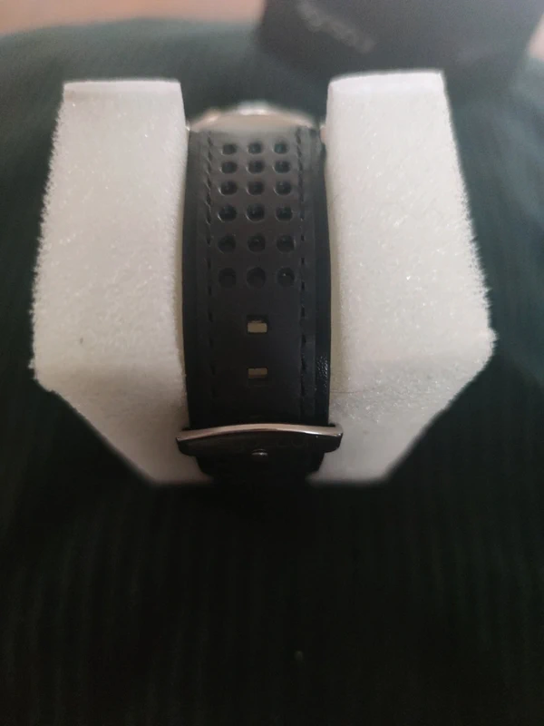 A vendre une montre neuve jamais utilisée dans sa boîte d'origine. Bracelet en cuir noir. Étanchéité : 3 bars type tendance Diamètre du boîtier: 45 mm en argent.
