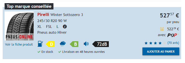 Accueil 9 Produit 9 2 Pneus Pirelli Winter Sottozero 3 – NEUFS