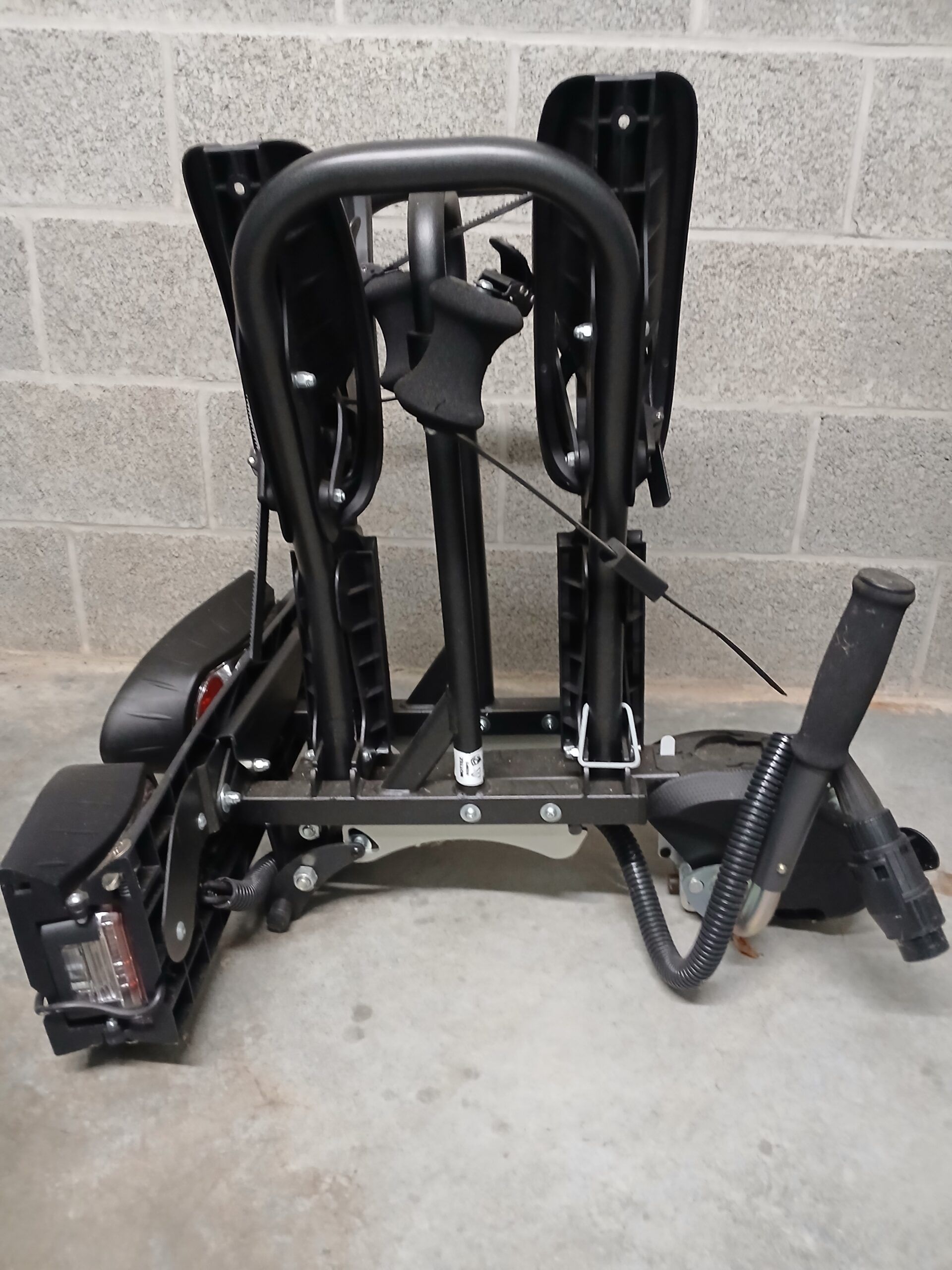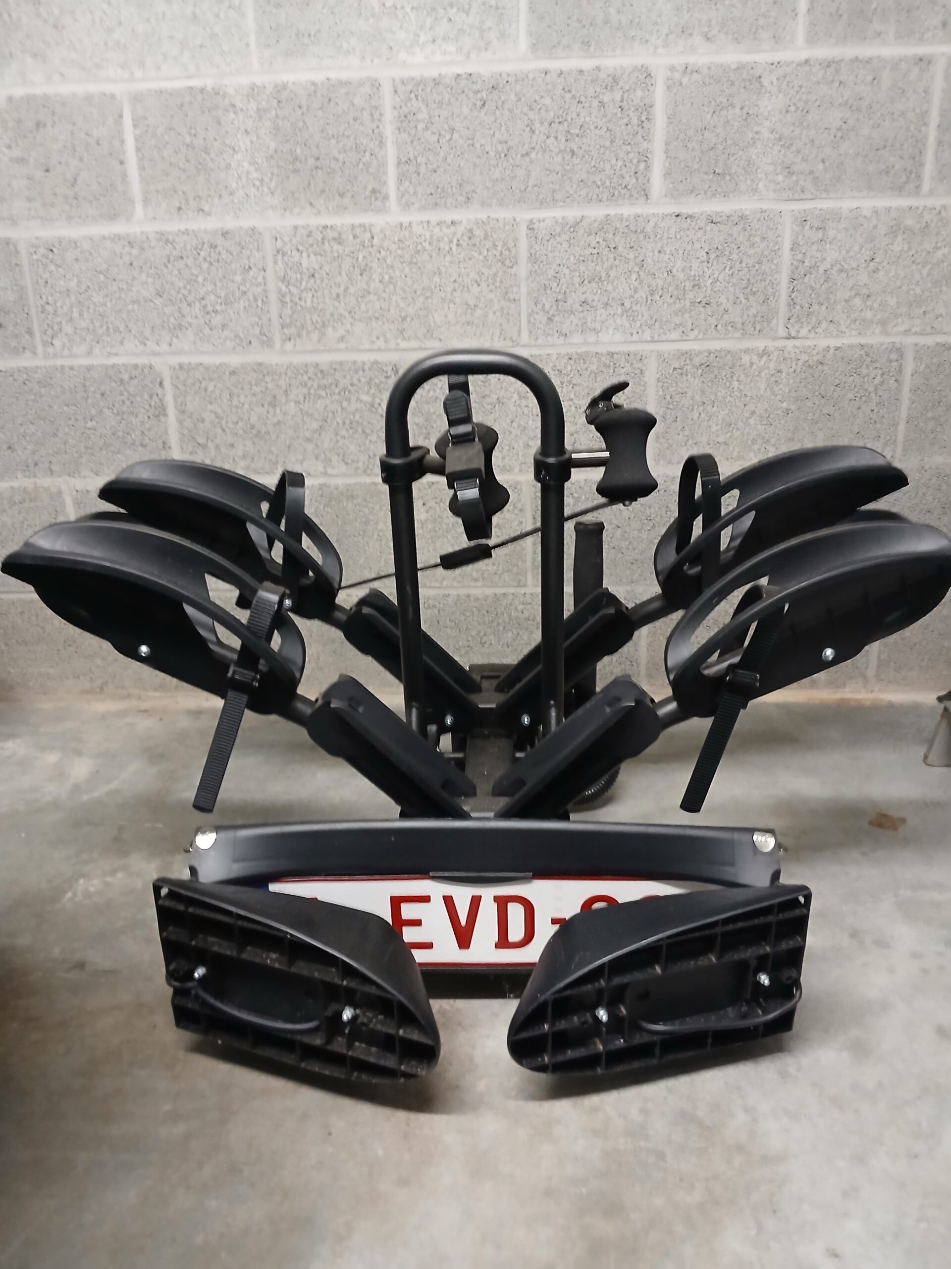 Porte vélo MOTTEZ d'occasion (état neuf-très peu servi) pour 2 vélos de tout type y compris électriques poids maximum 54kg (2 vélos). Poids à vide du porte vélo : 18kg