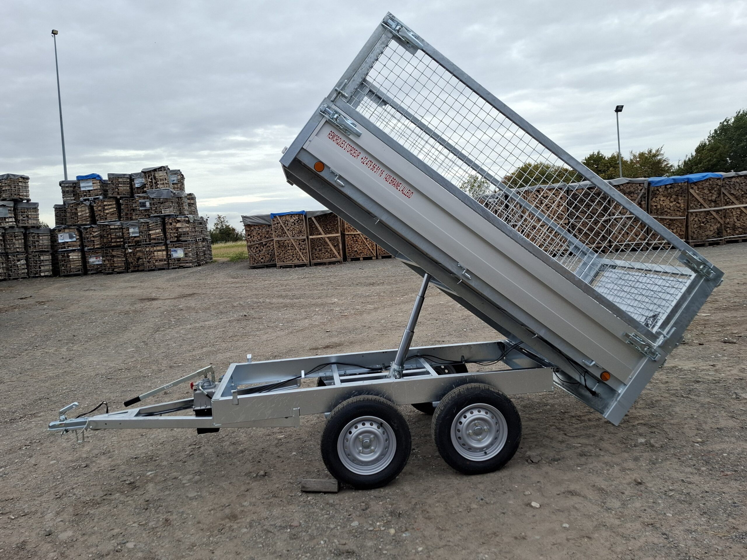 ✅Remorque Plateau grillagé basculant Alu double essieux 750 kg