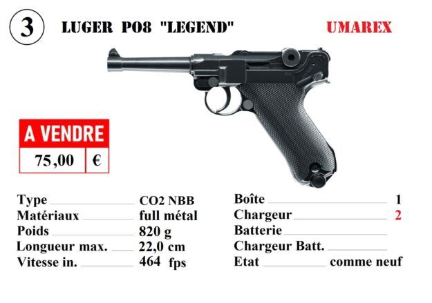 Ici, le célèbre pistolet WWII "Luger P08", à CO2 (NBB.)