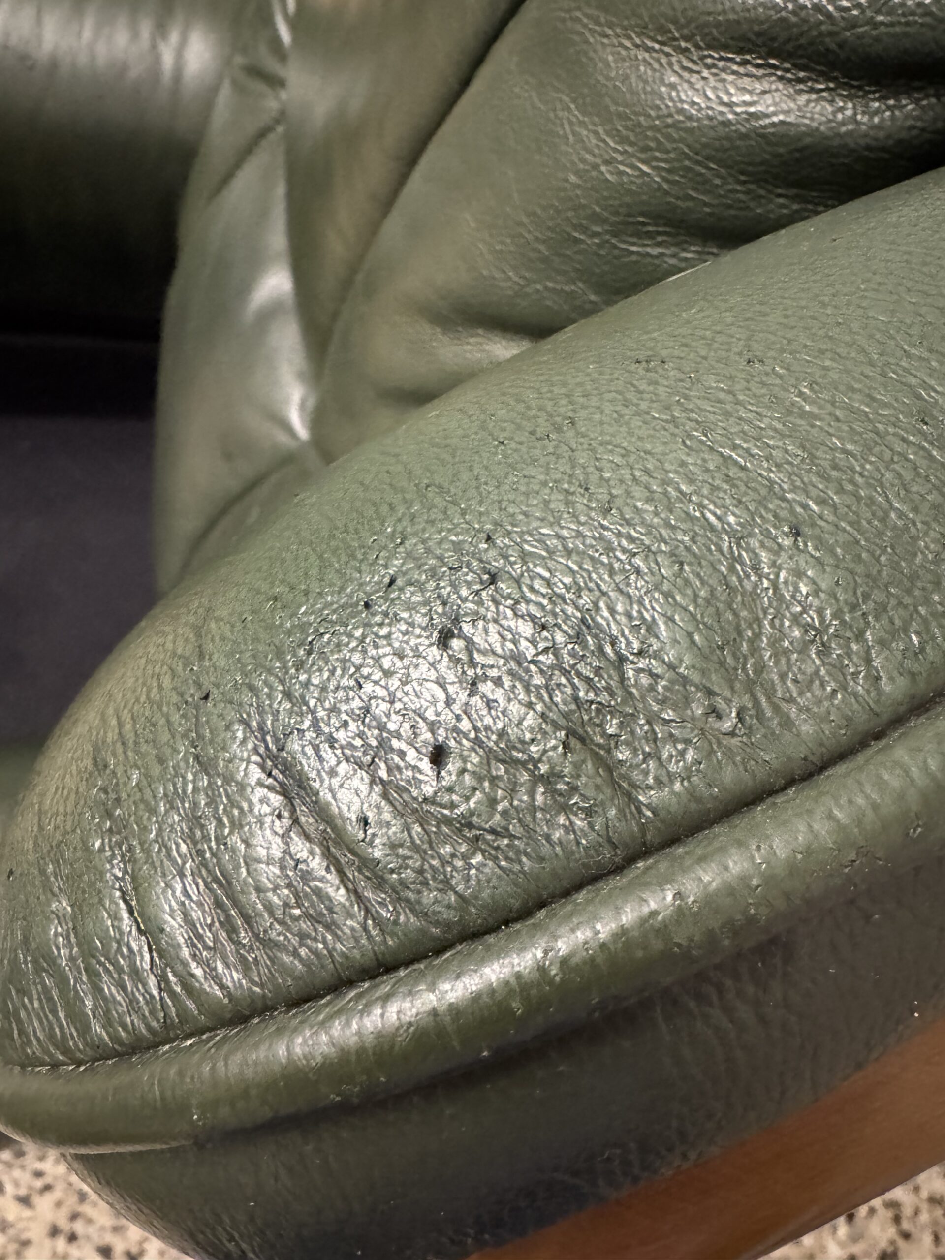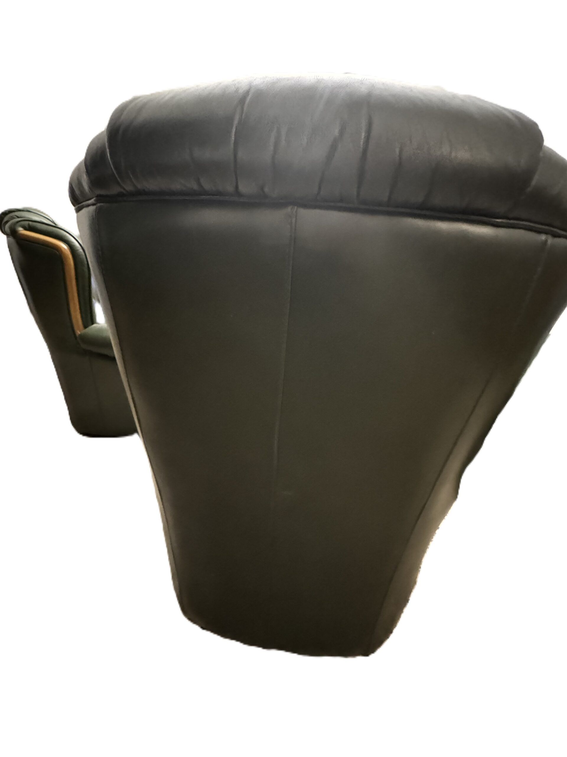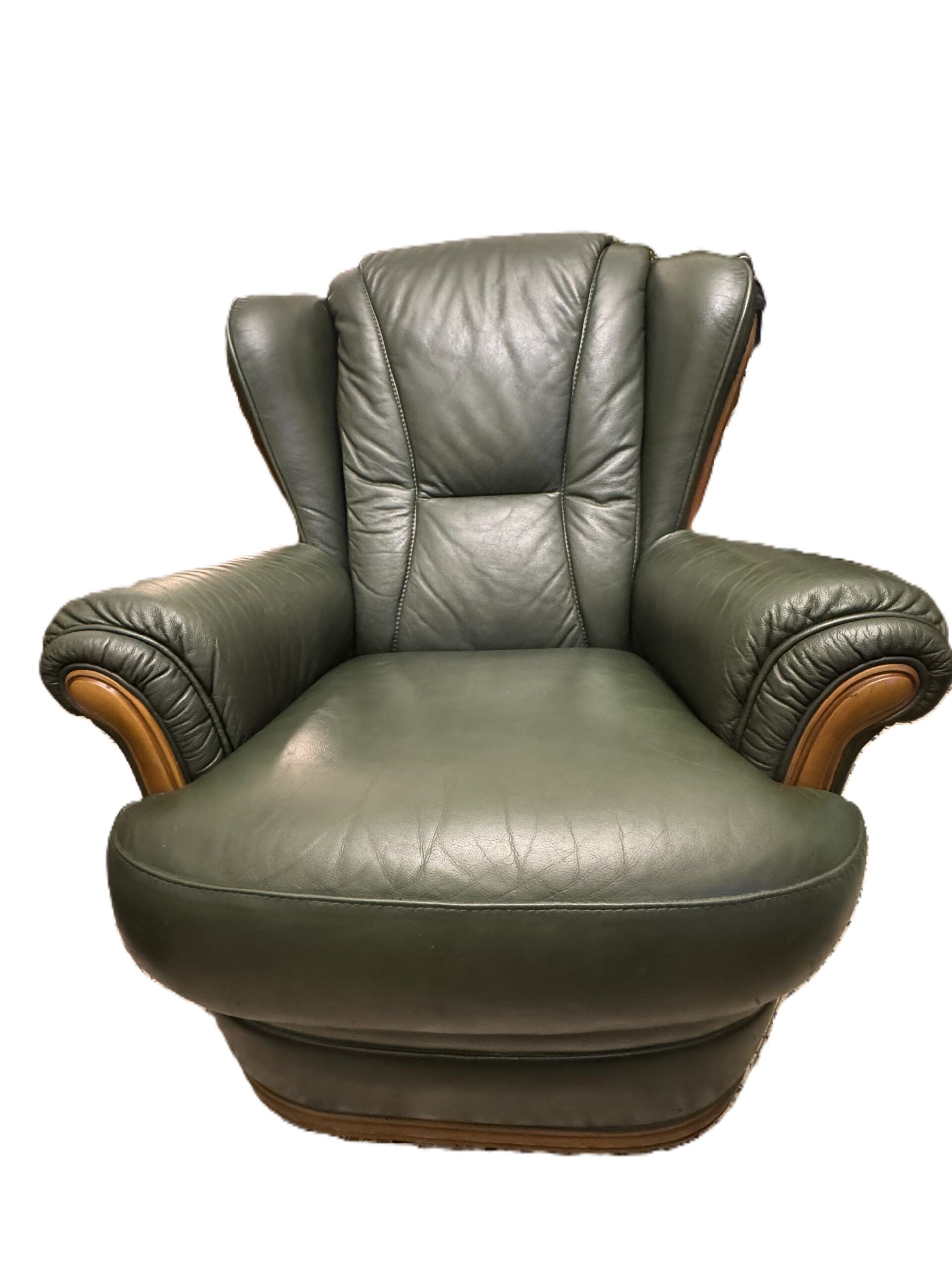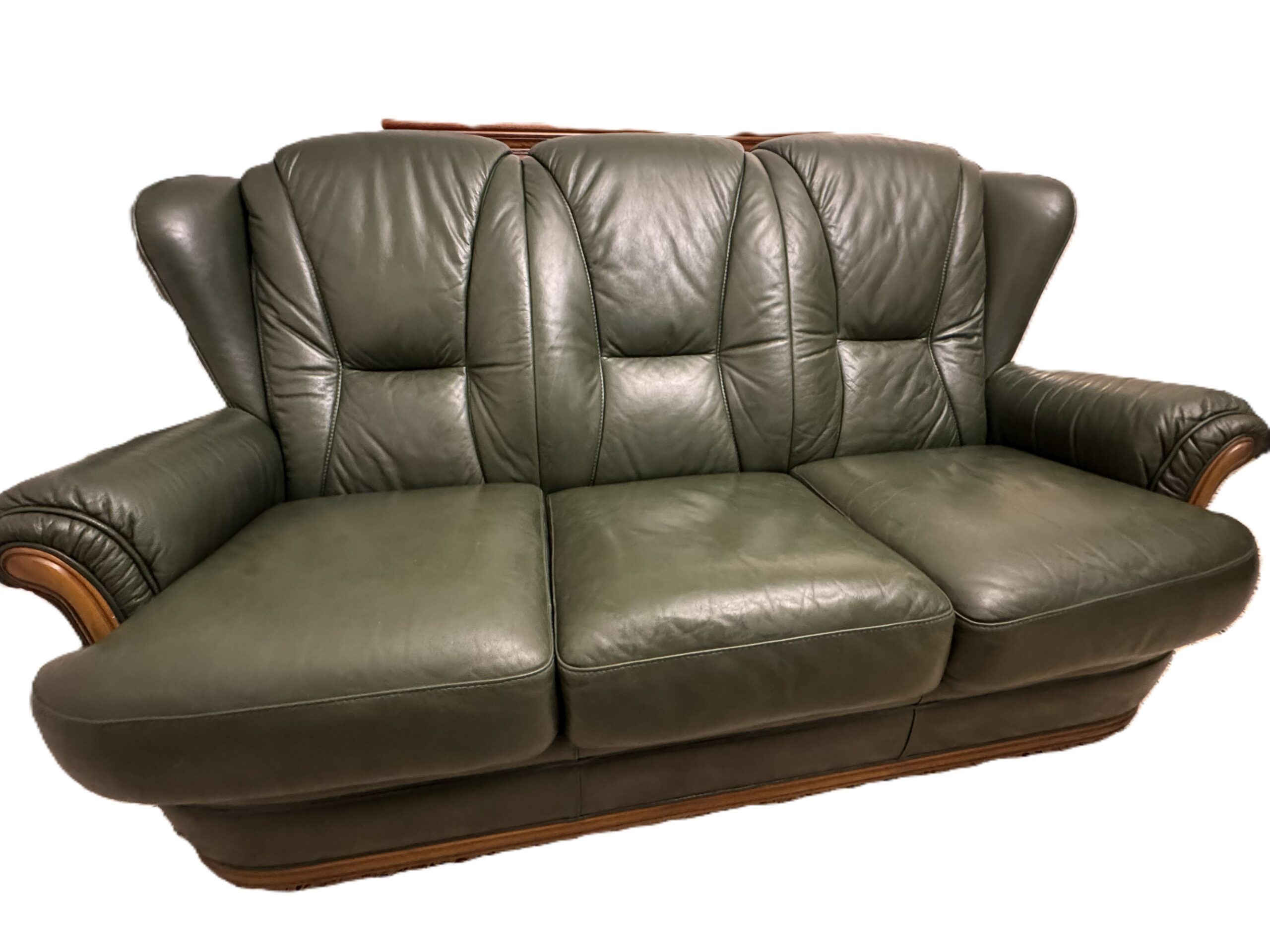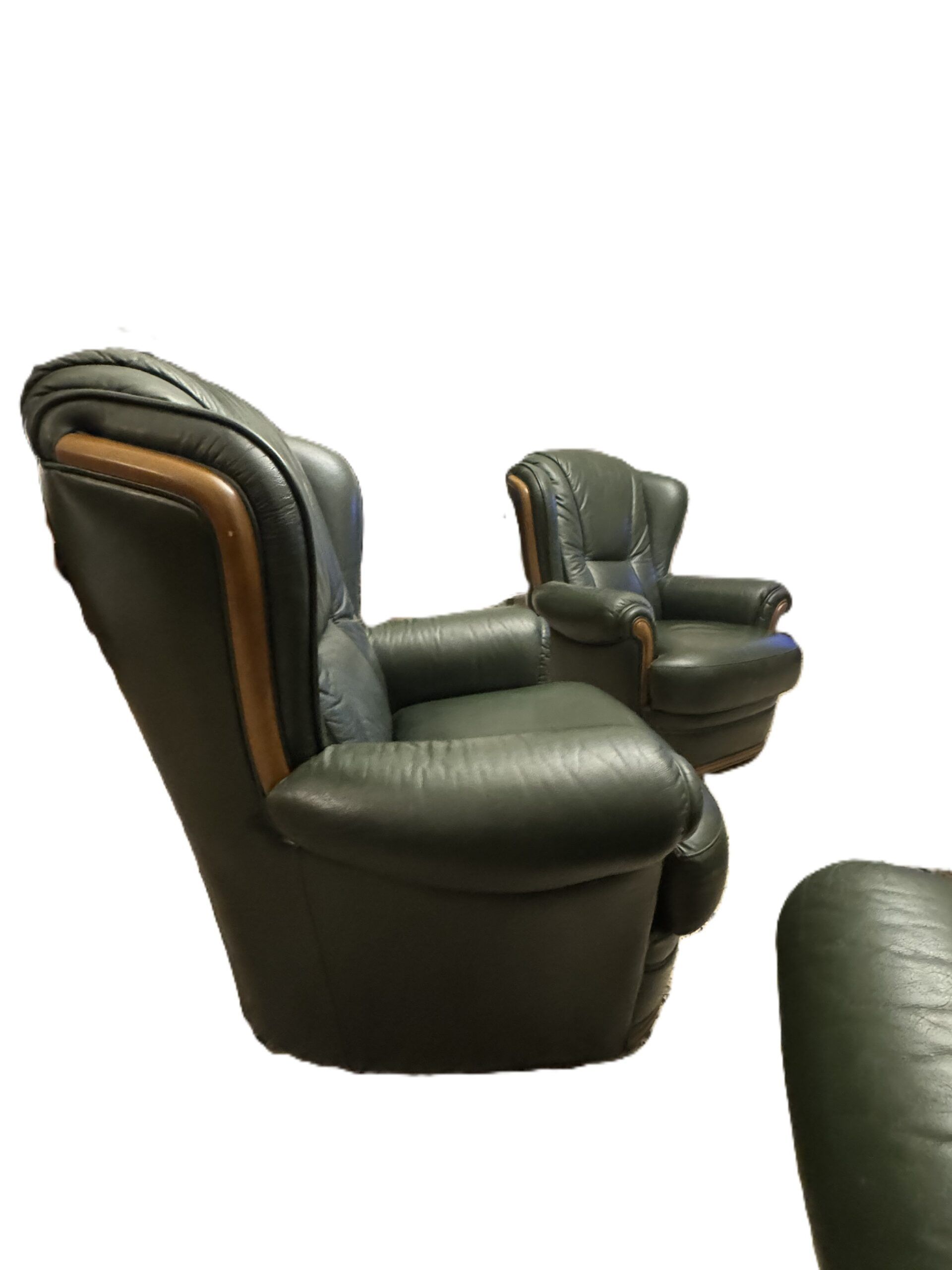 Salon en cuir type Daphné vert foncé – Divan 3 places et 2 fauteuils 1 place