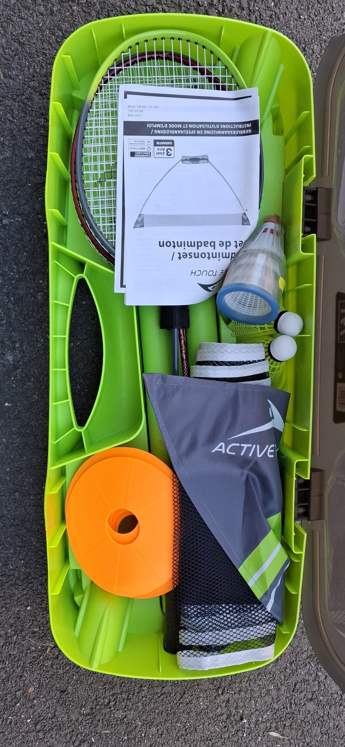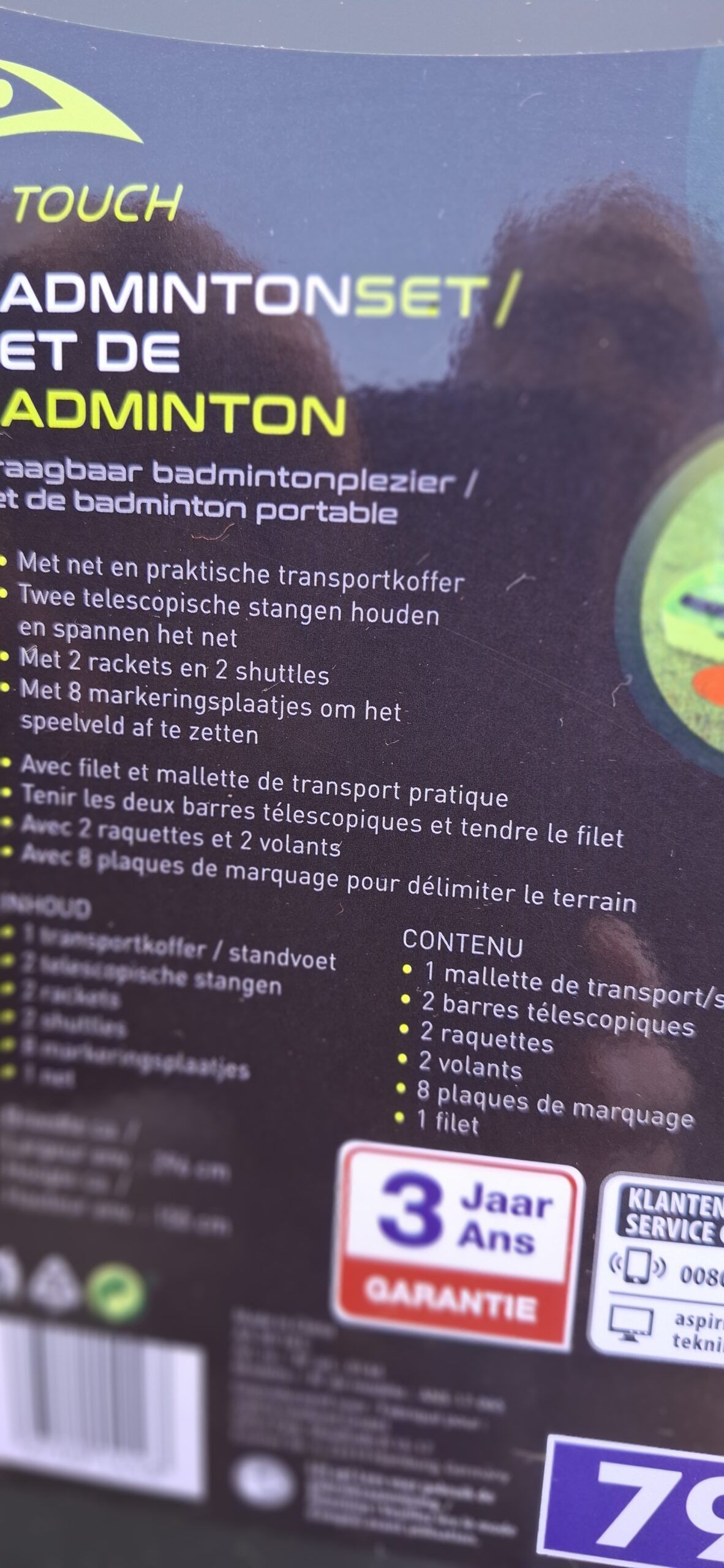 Set de badminton neuf ( servi une fois) avec 2 volants d'origine + 1 boite de 4 neufs