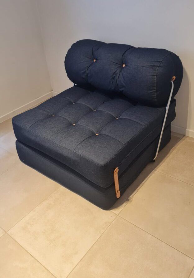 It easily converts into a simple but comfortable mattress by unfolding the two cushions — perfect for guests or small spaces.