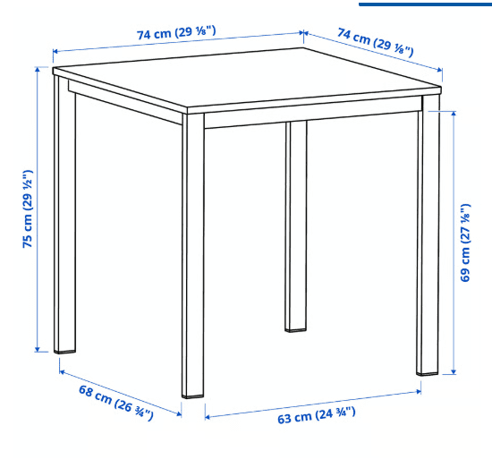 Table Dimensions: